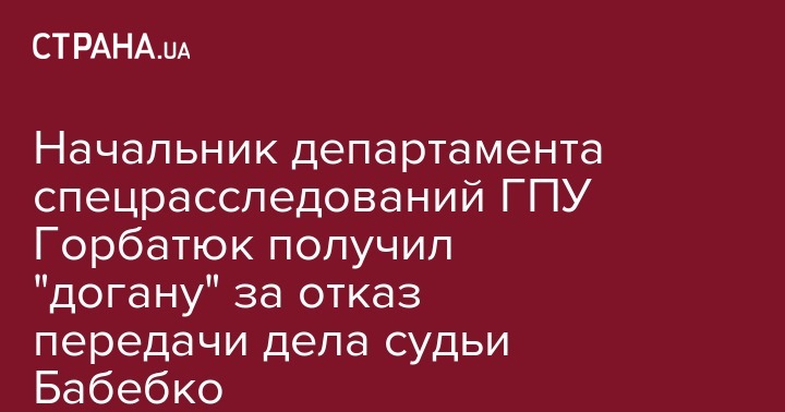 Начальник департамента спецрасследований ГПУ Горбатюк получил "догану" за отказ передачи дела судьи Бабебко