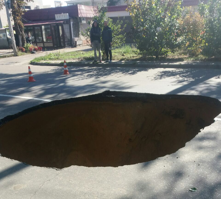 В Одессе посреди дороги образовался гигантский провал. Фото