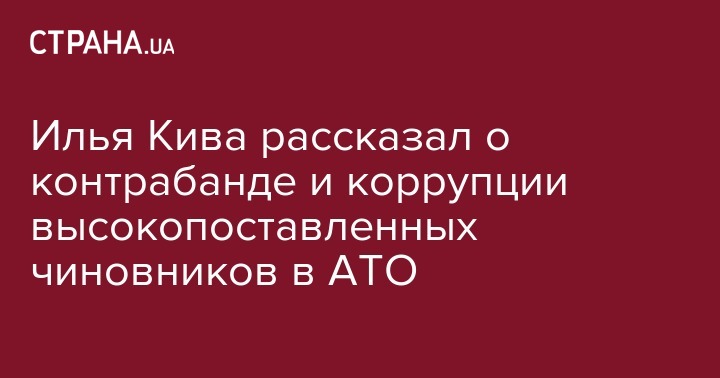 Илья Кива рассказал о контрабанде и коррупции высокопоставленных чиновников в АТО