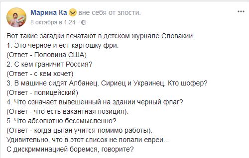 В Словакии детский журнал опубликовал ксенофобные шутки, в которых фигурируют украинцы, сирийцы, албанцы и ромы.