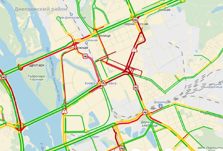 Кроме того, имеются проблемы с движением на Окружной дороге и в районе Одесской площади, на бульваре Дружбы Народов в сторону Печерского путепровода. На данный момент движение затруднено и на мостах.