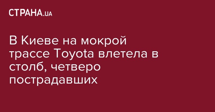 В Киеве на мокрой трассе Toyota влетела в столб, четверо пострадавших