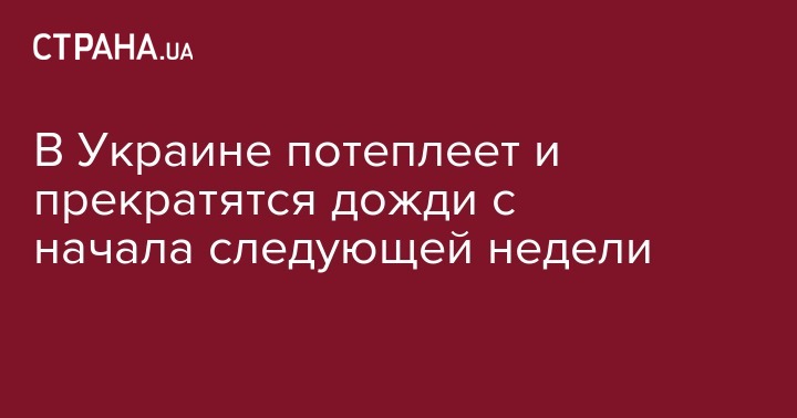 В Украине потеплеет и прекратятся дожди с начала следующей недели