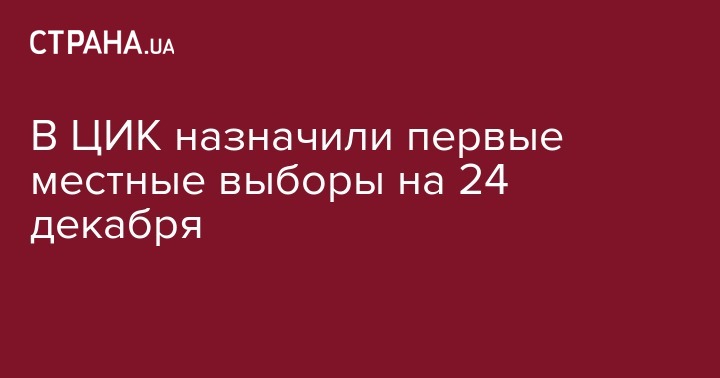 Центральная избирательная комиссия назначила первые местные выборы в 49 объединенных территориальных громадах на 24 декабря. Об этом сообщает пресс-служба ЦИК.
