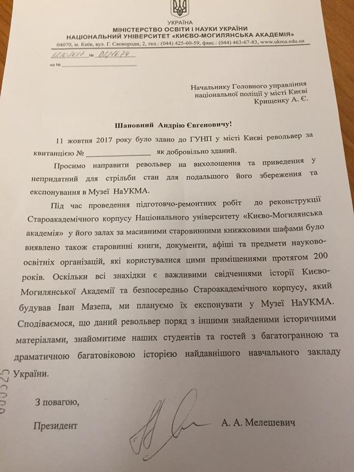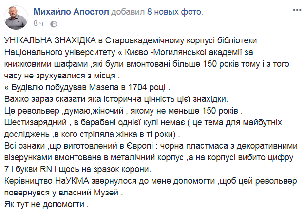 За шкафом в библиотеке Киево-Могилянской Академии нашли 150-летний револьвер