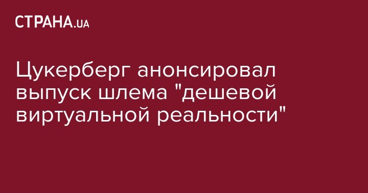 Цукерберг анонсировал выпуск шлема "дешевой виртуальной реальности"