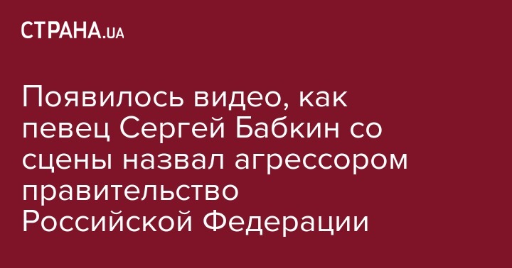 Украинский певец Сергей Бабкин на концерте в городе Днепр заявил со сцены, что считает агрессором правительство Российской Федерации.