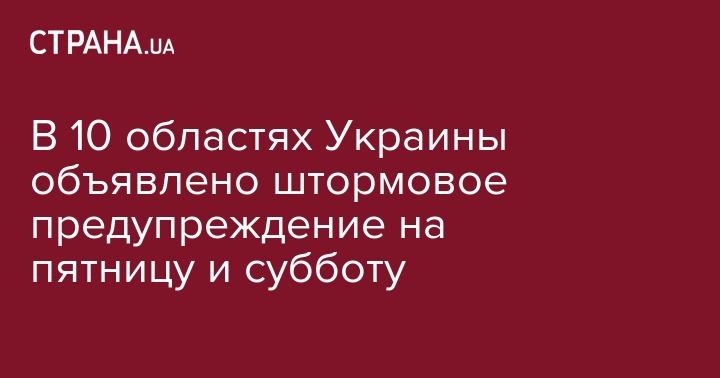 В 10 областях Украины объявлено штормовое предупреждение на пятницу и субботу
