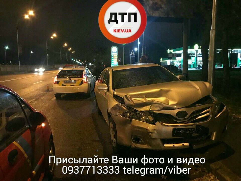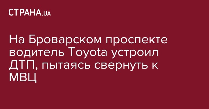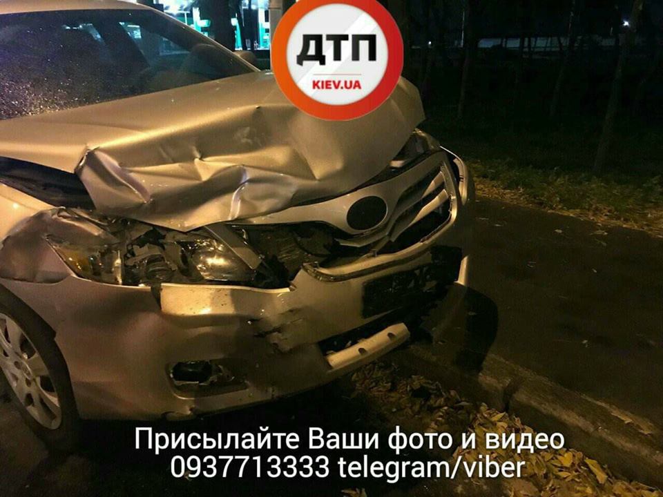 На Броварском проспекте водитель Toyota устроил ДТП, пытаясь свернуть к МВЦ
