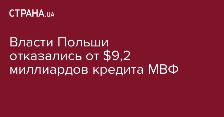 "Мы уходим с кредитной линии в размере $9,2 млрд от МВФ", - заявила пресс-служба Министерства финансов Польши.