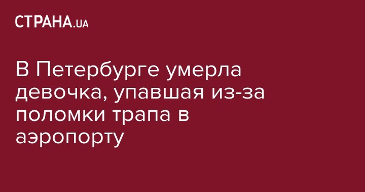 В России спустя две недели умерла годовалая девочка, упавшая вместе с бабушкой с трапа самолета в аэропорту Пулково в Санкт-Петербурге. Об этом пишет Сноб.