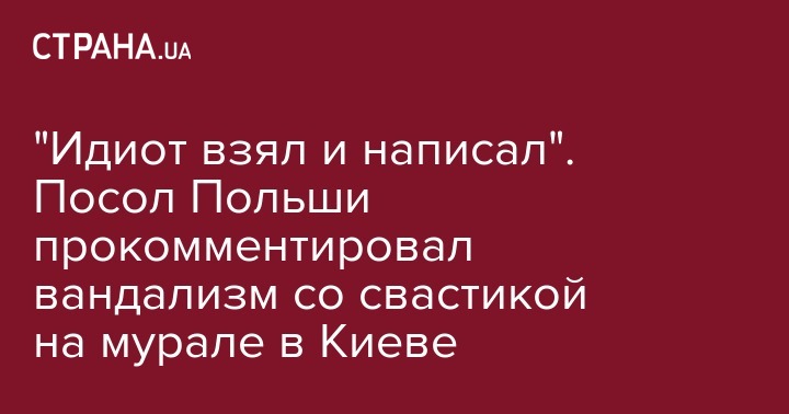 "Идиот взял и написал". Посол Польши прокомментировал вандализм со свастикой на мурале в Киеве