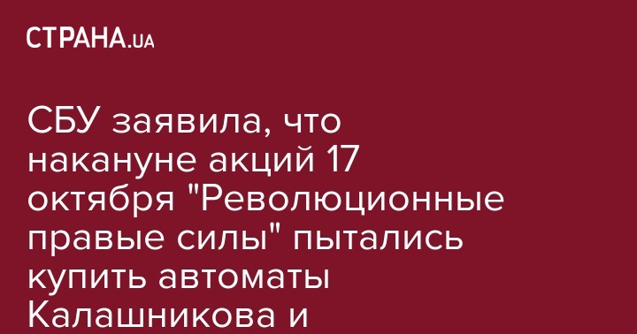 СБУ заявила, что накануне акций 17 октября "Революционные правые силы" пытались купить автоматы Калашникова и гранатометы