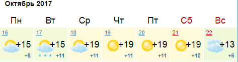 Сайт Gismeteо обещает +19 днем и ясные дни без осадков.