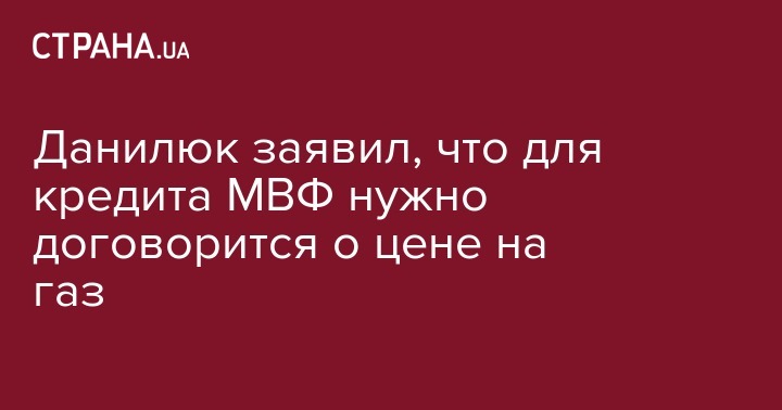 Данилюк заявил, что для кредита МВФ нужно договорится о цене на газ