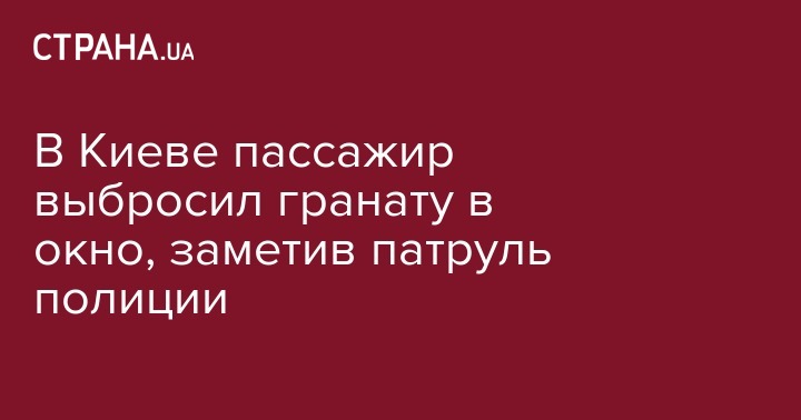 В Киеве пассажир такси решил избавиться от гранаты, выбросив боеприпас из окна автомобиля на виду у полицейских. Об этом сообщает пресс-служба полиции Киева.