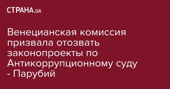 Спикер Верховной Рады Андрей Парубий сообщил, что Венецианская комиссия призвала отозвать законопроекты о создании Антикоррупционного суда в Украине.