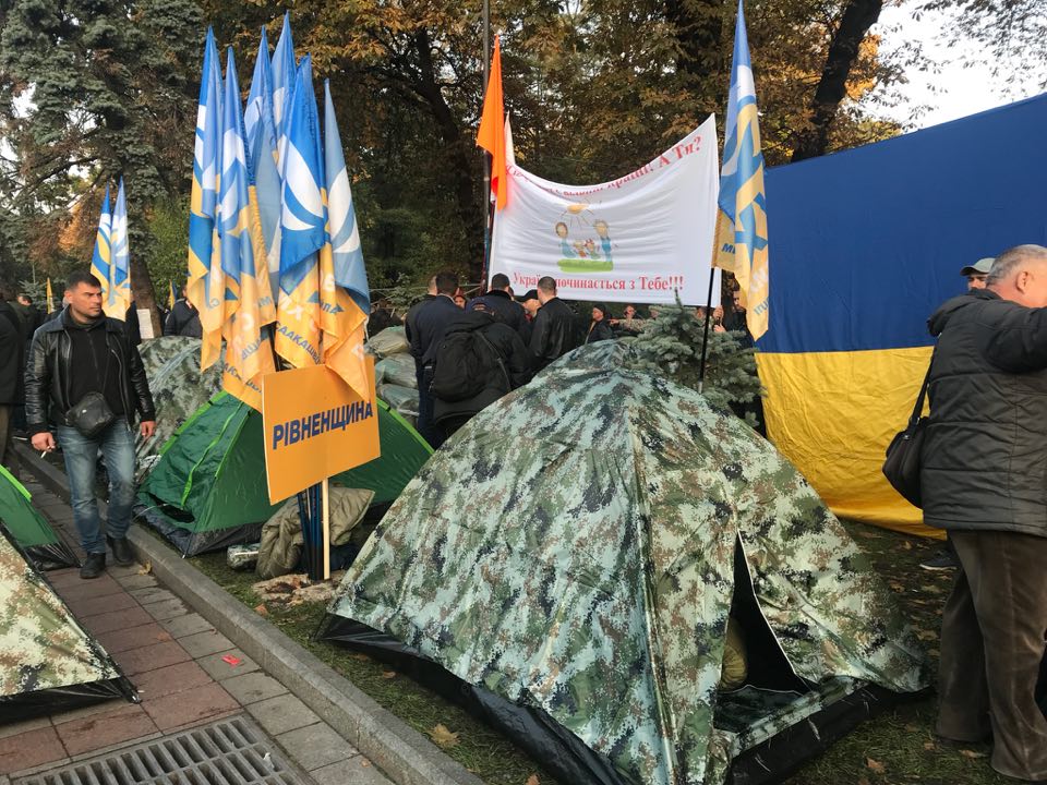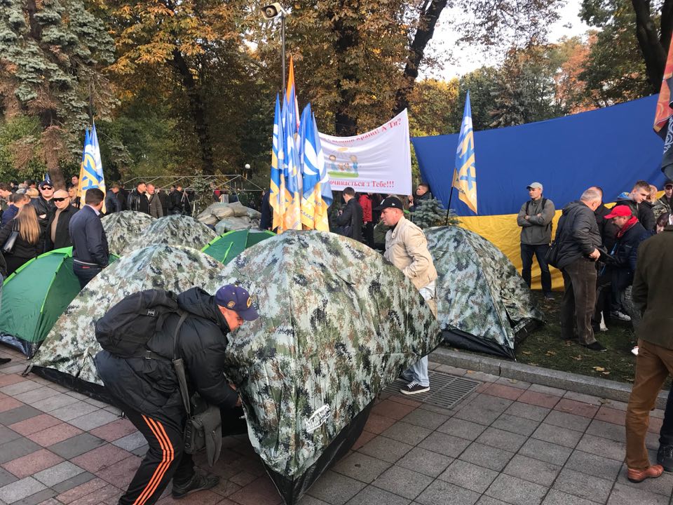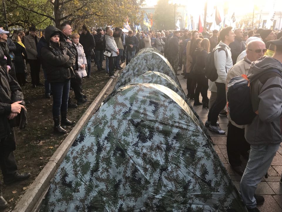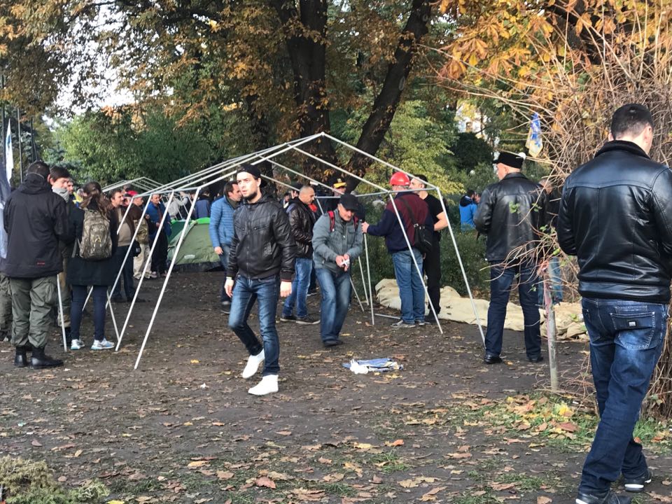 В данный момент протестующие ставят большую военную палатку - в зеленой зоне на границе с Мариинским парком. У организаторов есть около 700 палаток в запасе.