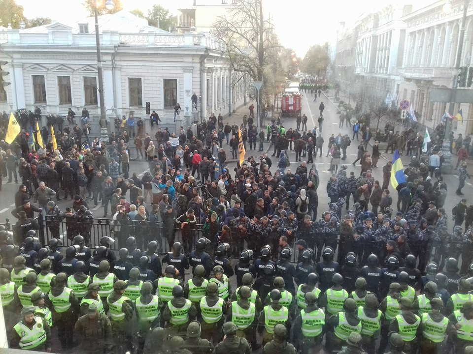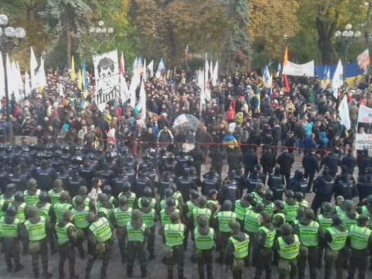 Во главе колонны шел Михаил Саакашвили и нардеп Серей Лещенко. Они подошли к кордону и полиция их пропустила, а с ними и большую часть людей.
