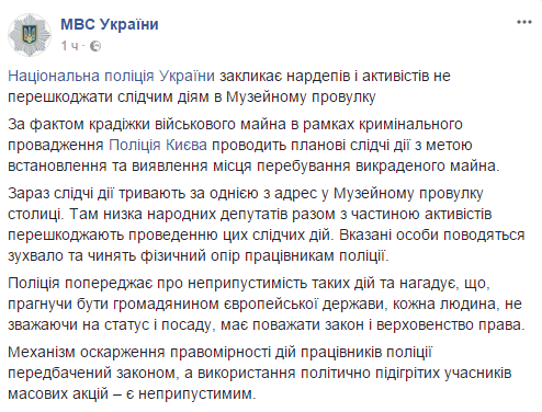 В Нацполиции призвали активистов и народных депутатов не препятствовать следственным действиям.