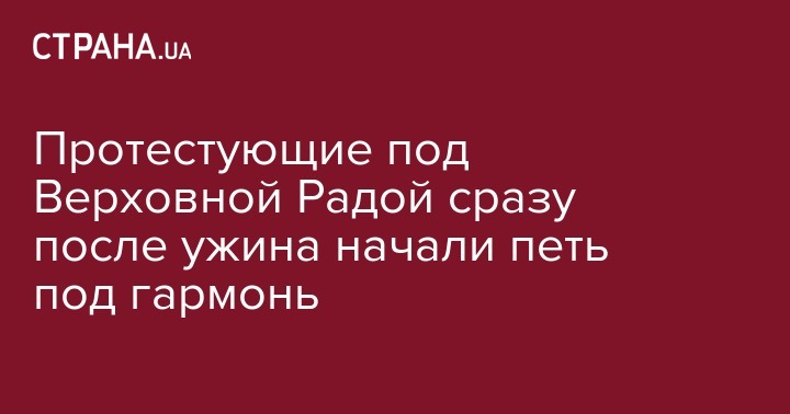 Протестующие поют песни под гармонь, время от времени сопровождая пение криками "Слава Украине!"