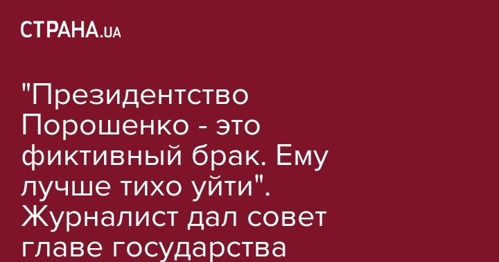 "Президентство Порошенко - это фиктивный брак. Ему лучше тихо уйти". Журналист дал совет главе государства