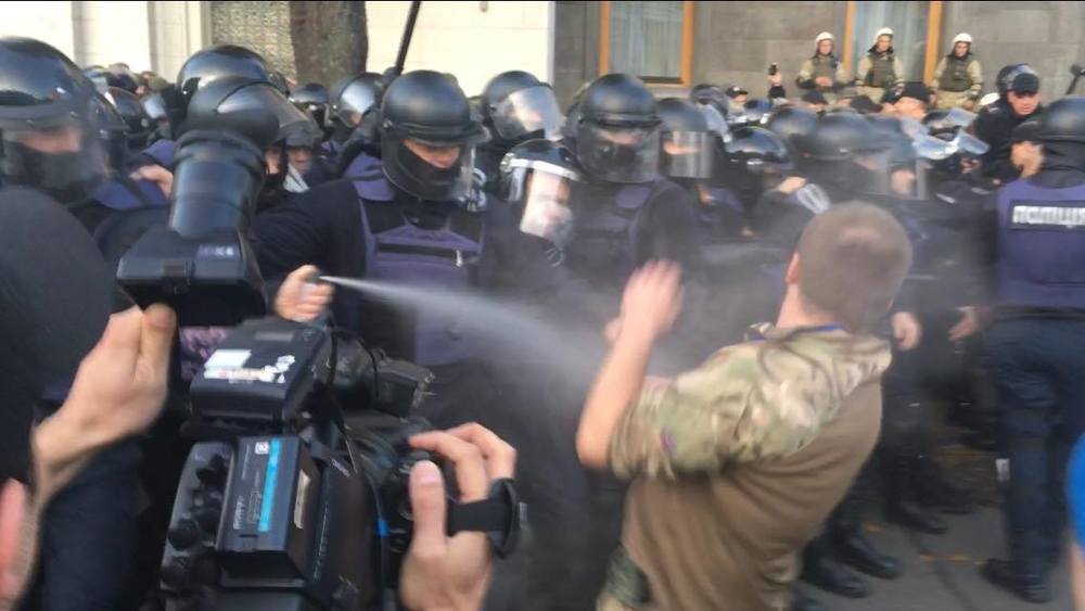 "Полиция пошла вперед на активистов, забрали щиты, началась потасовка. Газа очень много вылили", - передает корреспондент.