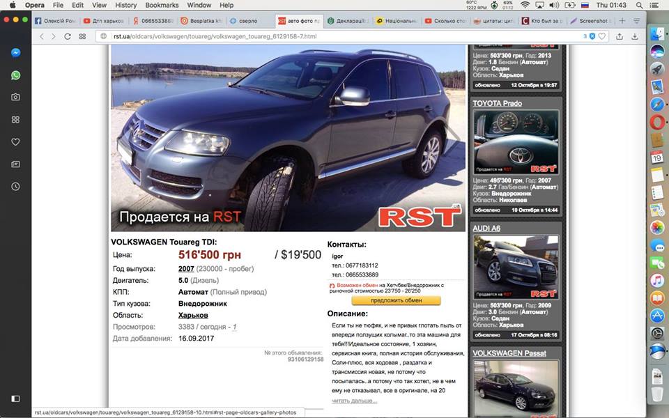 По данным Романова, в последнее время Дронов пытался продать свой Туарег. "Если ты не тюфяк, и не привык глотать пыль от впереди ползущих колымаг... то эта машина для тебя!!!", - написал автор объявления, которое размещено в Сети.