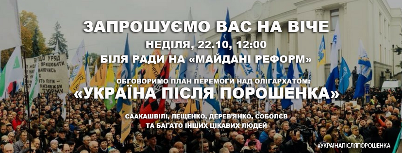 Она состоится 22 октября в полдень. Тема заявлена смелая - "Украина после Порошенко". А сам МихоМайдан получил первое официальное название - "Майдан реформ".