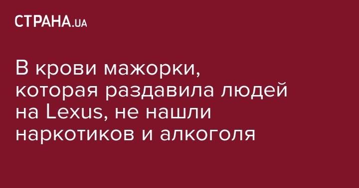 "Вчера была сделана экспертиза ее крови и других биологических жидкостей. Она была сделана дважды в присутствии, в том числе, активистов, приехавших к месту проведения экспертизы. Дополненная экспертиза будет проводиться, и образцы ее упакованы и отправлены на Киев. На месте экспертизы не было обнаружено у нее алкогольных или наркотических средств. Но не всегда такие ДТП совершаются под ними (алкогольными или наркотическими препаратами). Это не является смягчающим фактором. Погибли люди. Она превысила скорость и проехала на запрещающий сигнал светофора. Этого достаточно для того, чтобы она получила реальный срок лишения свободы", - заявил нардеп.