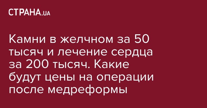 Камни в желчном за 50 тысяч и лечение сердца за 200 тысяч. Какие будут цены на операции после медреформы