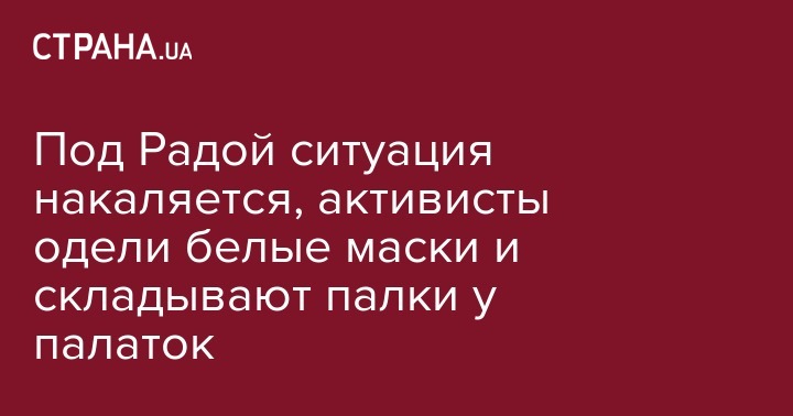 Кроме того, митингующие активизируются. Они складывают палки возле палаток и забора, ломают опоры из-под шатров и созывают крепких мужчин.