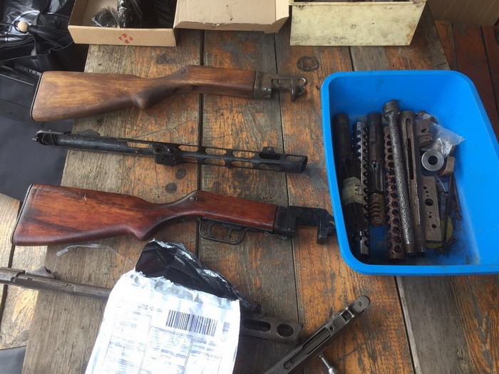 Во время обысков по месту жительства злоумышленника и в нелегальной оружейной, оборудованной в гараже, оперативники изъяли два пистолета-пулемета "Шпагина", винтовку "Мосина" и почти 120 деталей для восстановления оружия.