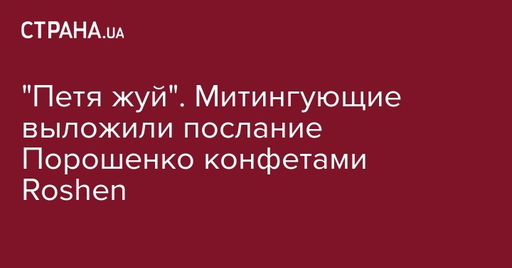 "Петя жуй". Митингующие выложили послание Порошенко конфетами Roshen