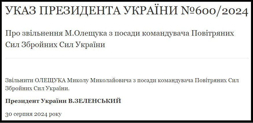 Напомним, сегодня Зеленский уволил командующего Воздушными силами Олещука.