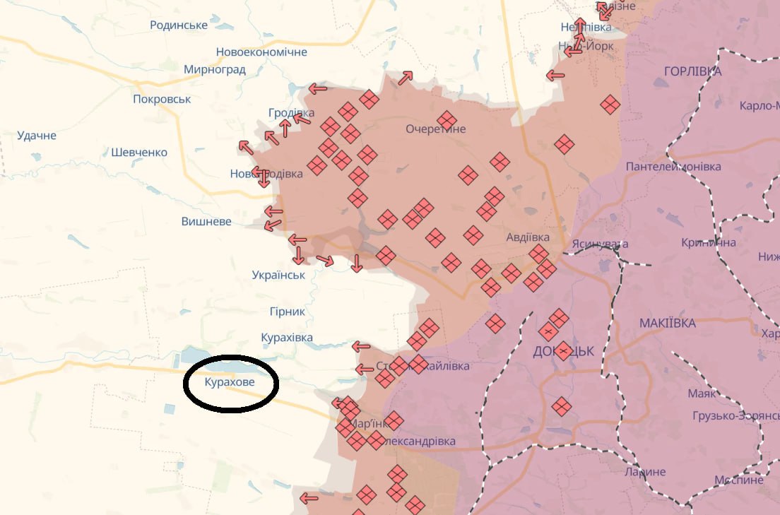 Курахово пока не находится на линии фронта, но с севера, со стороны выступа на Покровском направлении, идет наступление российских войск в его сторону.
