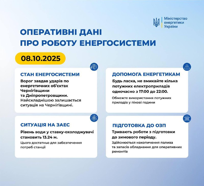 10.56 РФ атаковала объекты энергетики не только в Черниговской, но и Днепропетровской области, сообщает Минэнерго.