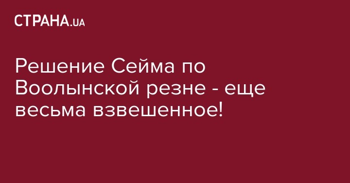 Сейм Польши принял в целом взвешенный текст резолюции по поводу Волынской трагедии. Если мы хотим строить европейское правовое государство, то должны спокойно признавать, что радикальный Украинский национализм является таким же злом, как и любой другой национализм, а совершенные по этническому признаку убийства являются геноцидом. И совершенно неважно, кто там первый начал. В нормальном обществе этому нет оправданий. Как и применению пыток и расстрелов к пленным сепаратистам на Донбассе.