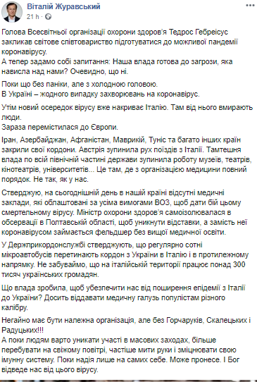 Что власть сделала, чтобы обезопасить нас от распространения эпидемии из Италии в Украину? Достаточно отдавать медицинскую отрасль популистам разного калибра.