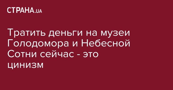 Цинизм тратить деньги с наших налогов на музеи Голодомора и Небесной Сотни в те месяцы когда их нужно тратить на продуктовые пайки для стариков, что сидят дома на карантине и еще месяц как минимум будут сидеть! Чтобы СЕЙЧАС голода не было!!!