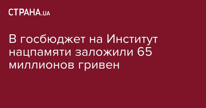 Все-таки, Украина - не просто богатая страна, а очень богатая! В проект бюджета на 2021 год, на Институт национальной памяти заложили - 65 миллионов гривен! Два с половиной миллиона долларов на содержание совершенно пустого и бесполезного учреждения.