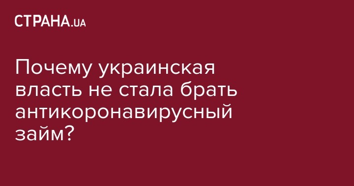 Почему Украина не получила свой "антикоронавирусный займ" на 2 млрд. дол. в МВФ, который по параметрам предоставления был намного выгоднее, чем обсуждаемый stand-by (сроки, ставка, отсутствие предусловий)?