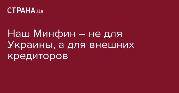 Сегодня наш Минфин – это не Минфин Украины, а Минфин внешних кредиторов, поскольку вместо инвестирования денег в собственную экономику и население он раскладывает деньги по карманам кредиторов.