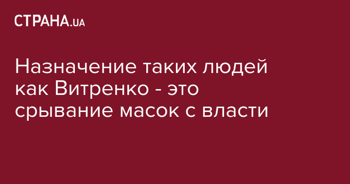 Назначение таких людей как Витренко - это срывание масок с личин власть придержащих.