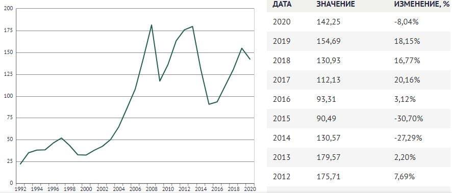 В 2020году номинальный ВВП Украины в долларовом эквиваленте составил - 142, 25 млрд. долл., что на 8,04% меньше, чем в 2019 году (154,69 млрд. долл.).