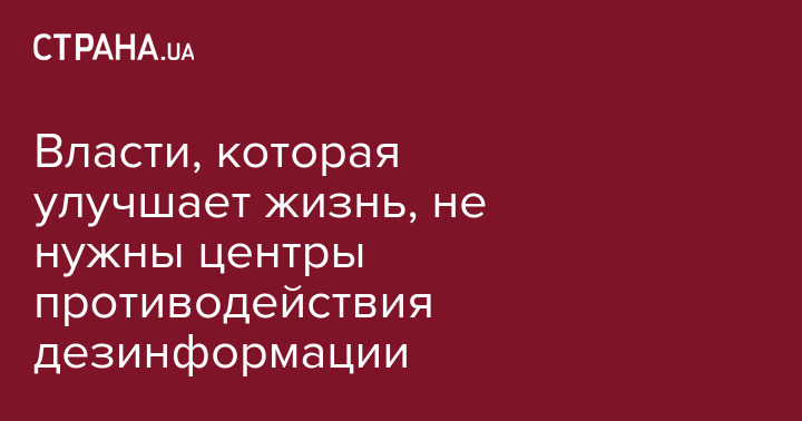 Если власть реально улучшает жизнь людей, если она реально борется с коррупцией, если она создает условия для свободного предпринимательства, если она понижает налоги, гарантирует права людей и бизнеса, если она эффективно тратит налоги, если она прозрачна , если она постоянно проводит референдумы, если слова и дела у нее не расходятся и т.д., то такой власти никакая дезинформация не страшна. Все что нужно для такой ответственной власти это просто честно информировать общество о том КАКИЕ проблемы власть видит и КАК она собирается их решать.