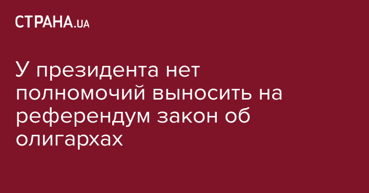 Извините, что не вовремя, но у Президента нет полномочий выносить на референдум законы об олигархах. Единственная теоретическая возможность инициировать какой-то подобный вопрос — это только народная инициатива и строго после сбора трёх миллионов подписей в не менее, чем двух третях областей.