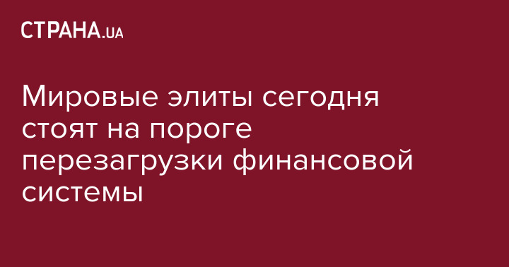 Мировые элиты сегодня стоят на пороге перезагрузки финансовой системы Мира, которая решит сразу несколько проблем: