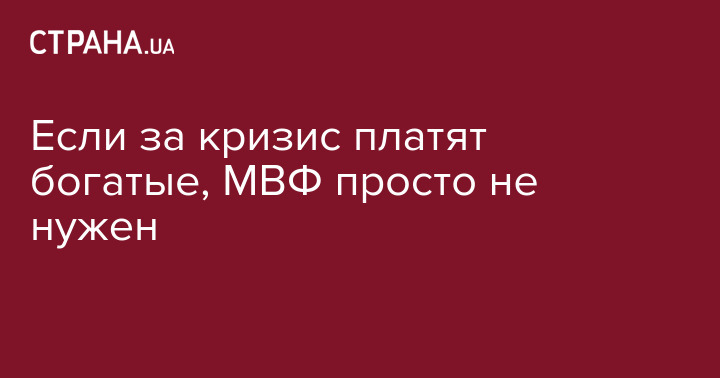 Если за кризис платят богатые - МВФ не нужен, с ним работают, когда платить будут бедные, - экономист Кущ