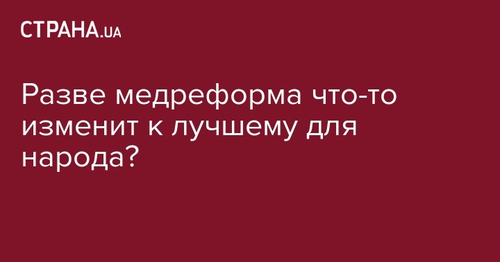 Собственно, а зачем вообще нужна медицинская реформа? По-моему, нынешняя медицина вполне соответствует экономической ситуации в стране и по этой причине удовлетворяет большинство населения.